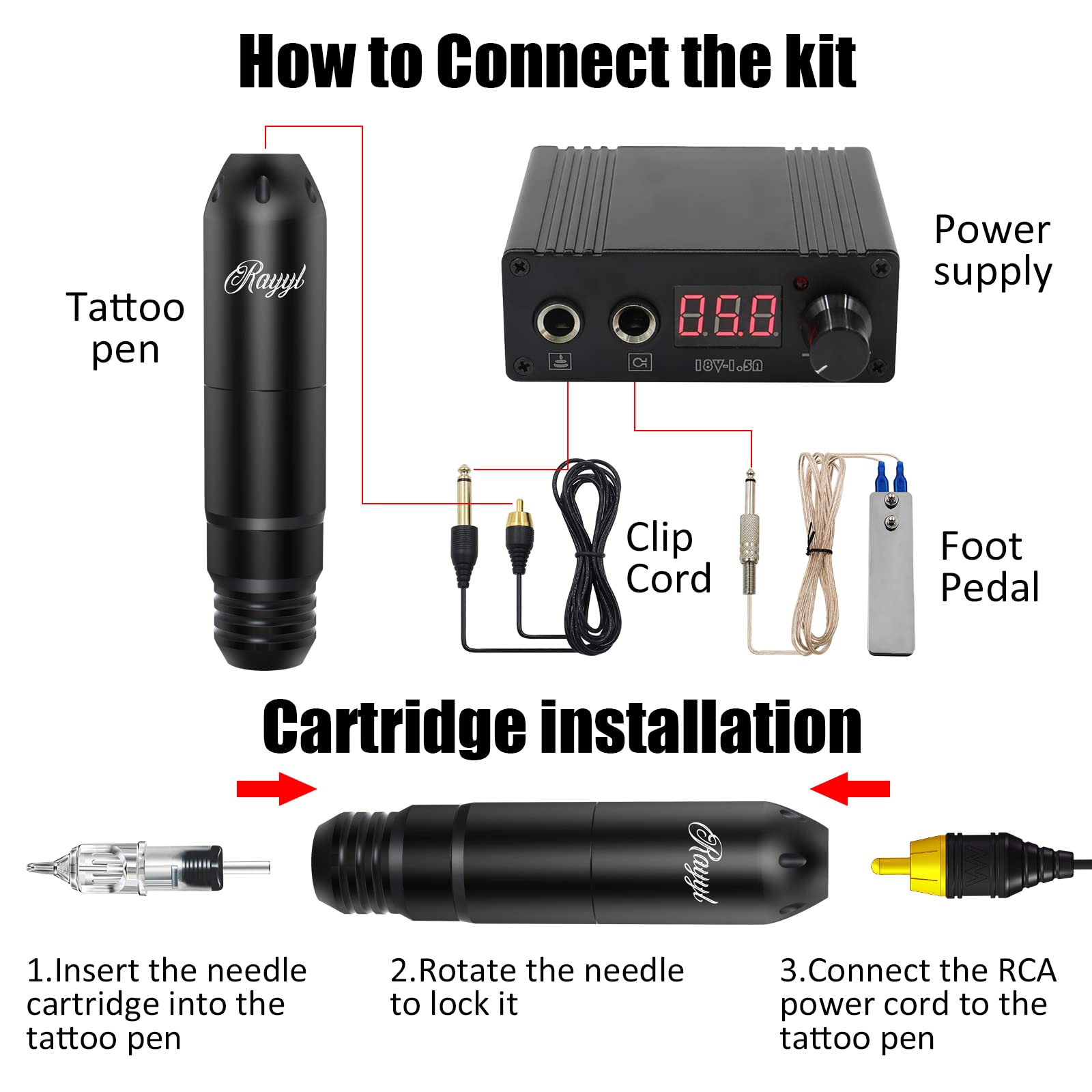 Tattoo Machine Pen Kit Rayyl Tattoo Machine Kit With Rotary Machine 20pcs Cartridges Needles Mini Power Supply Grip Tape Tattoo Practice Skins Ink Caps For Beginners Professional Artists Amazon Co Uk